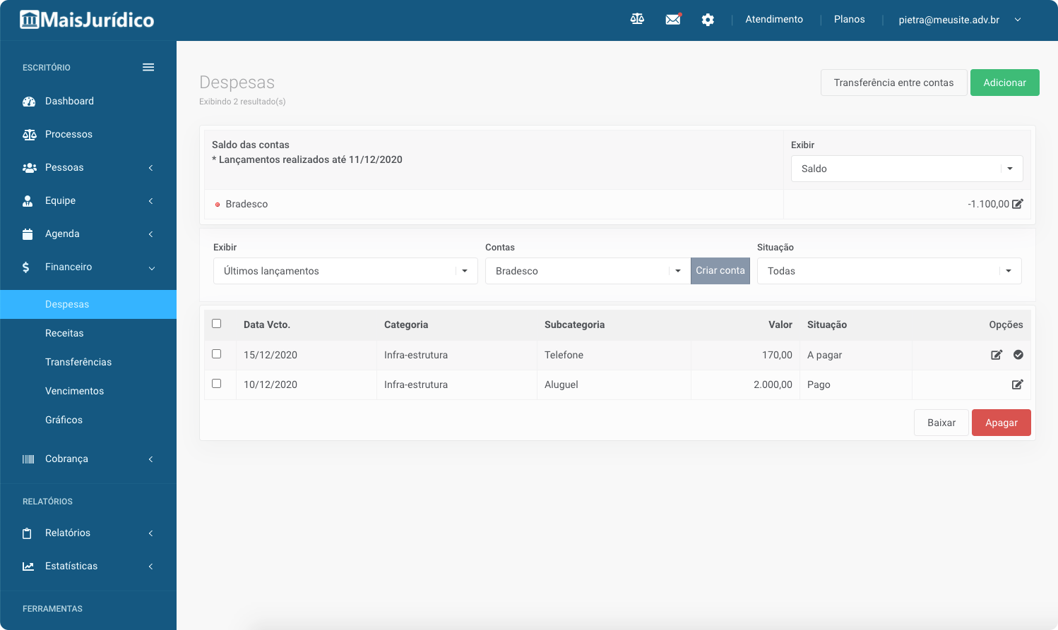 O MaisJurídico possui uma navegação simples e intuitiva, o que facilita organizar o financeiro do seu escritório.